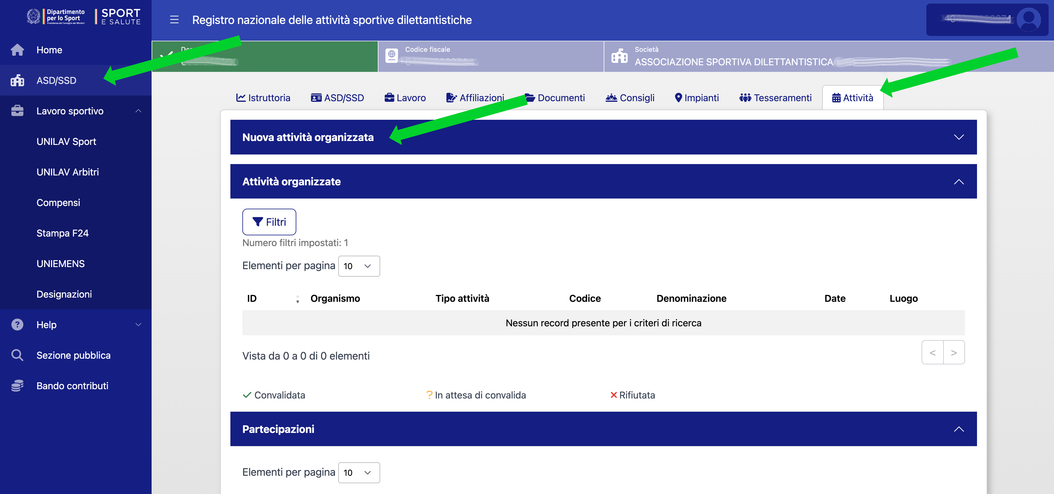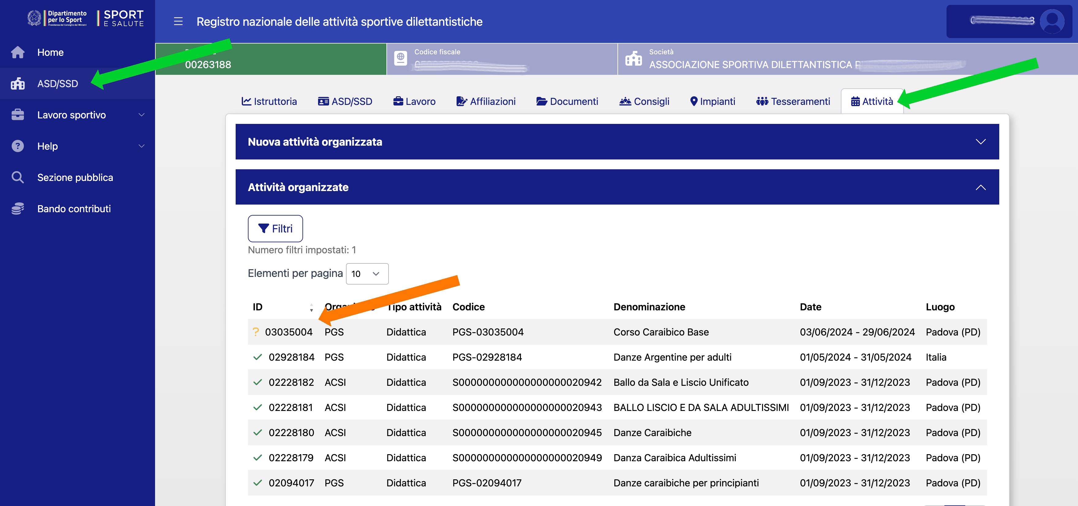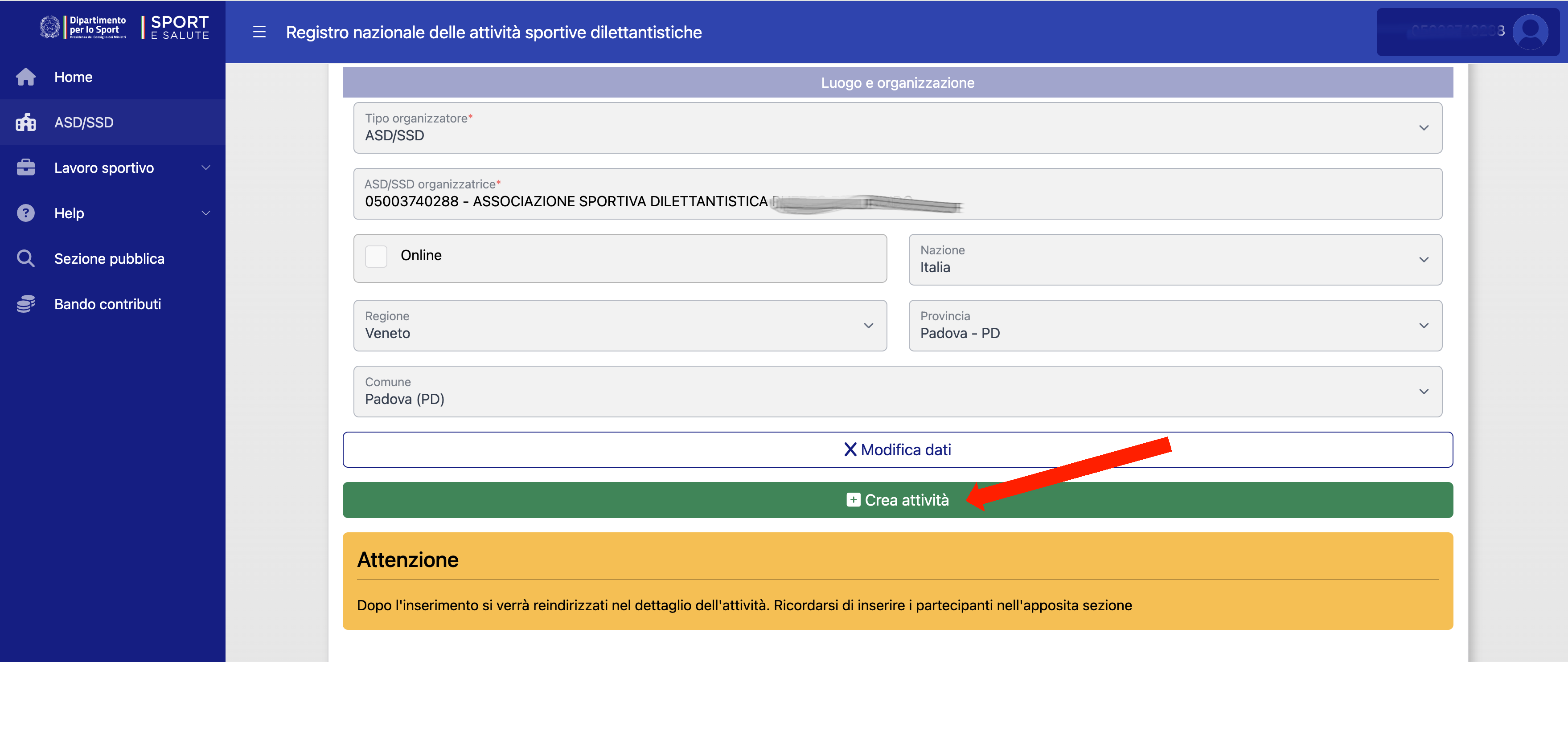 Di seguito come inserire le attività didattiche (obbligatorie per rimanere nel RASD e godere dei benefici fiscali di questo) da inserire nel RASD (Registro delle Attività Sportive dilettantistiche).