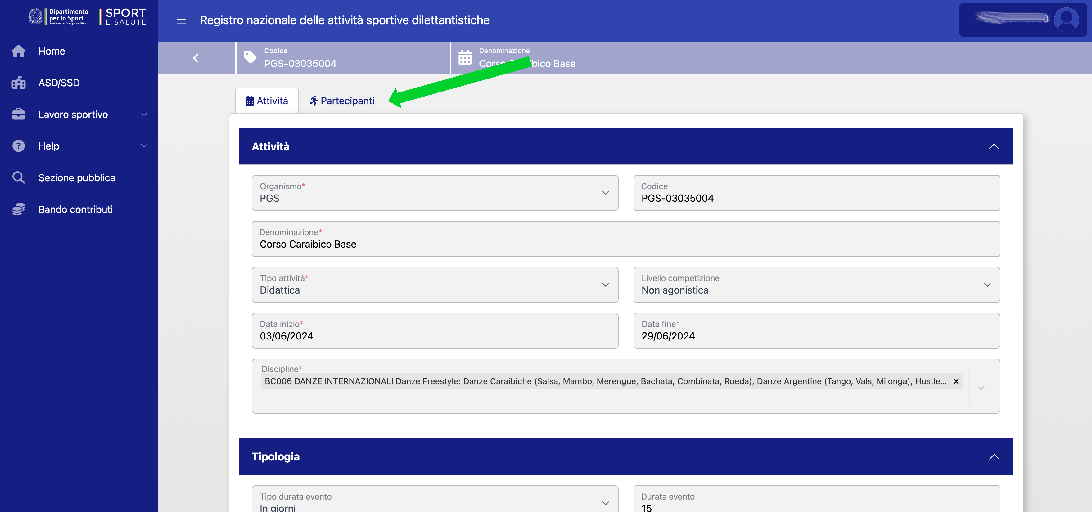 Categorie Partecipanti: selezionare se il corso era rivolto a Bambini ed adolescenti, Adulti, Over 65, Donne, etc.