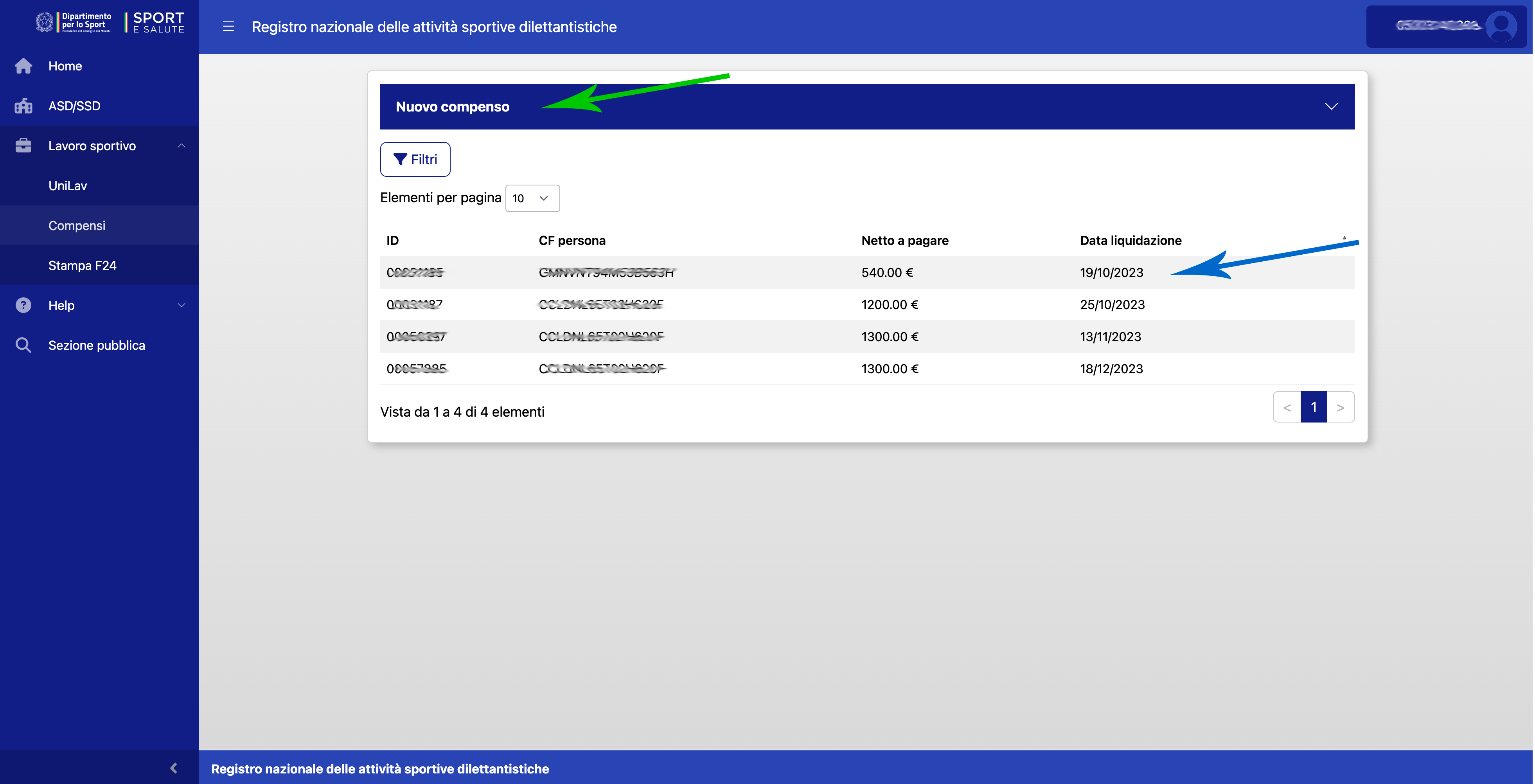 Inserire il codice fiscale dell'istruttore sportivo (attenzione a trovare il codice fiscale corretto).