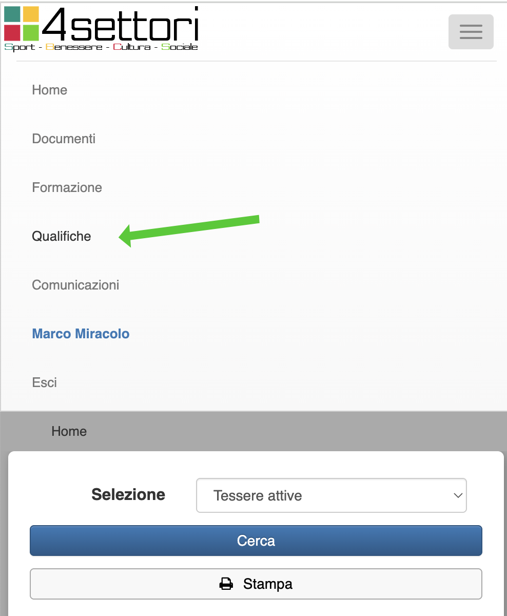 Cliccare sulle tre linee orizzontali simbolo del menu e successivamente al menu qualifiche.