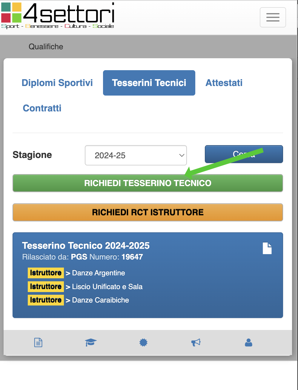 Entro una decina di giorni dal pagamento il tesserino tecnico sarà disponibile nell'area Qualifiche - Tesserini Tecnici di www.tesserasportiva.it .