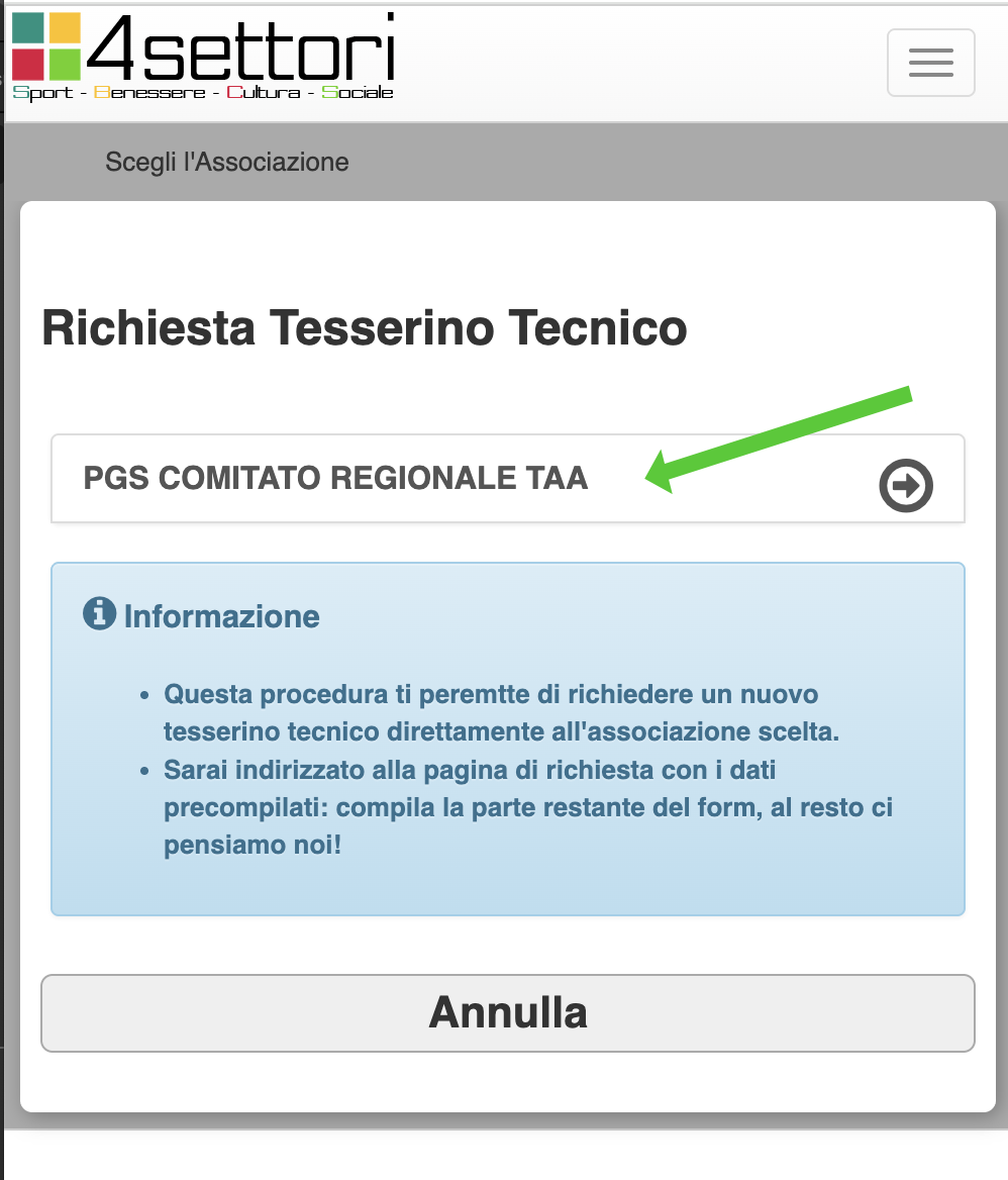 Accedere al nostro profilo personale di www.tesserasportiva.it