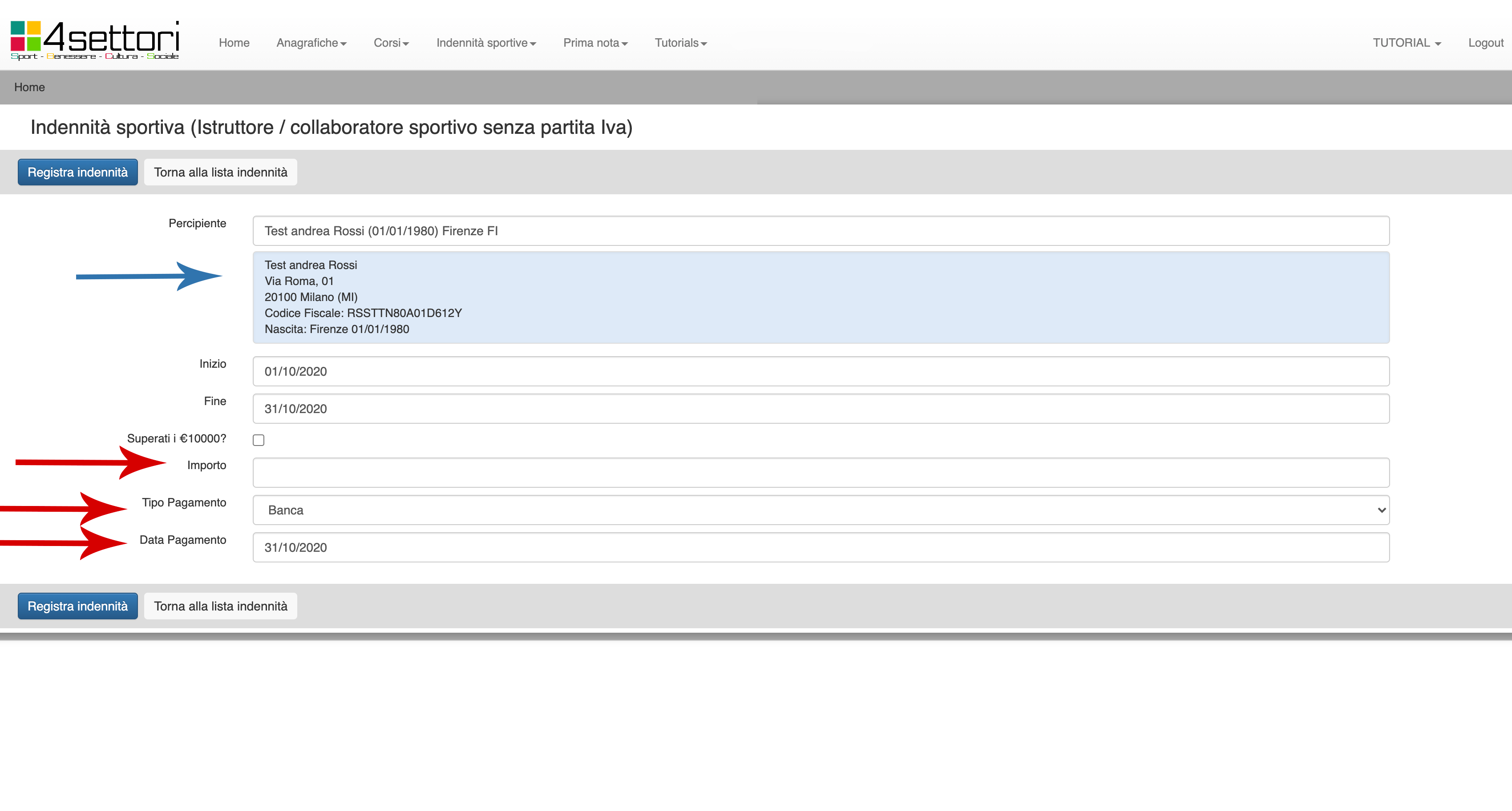 Di seguito il tutorial per la gestione delle indennità sportive attraverso il gestionale 4Gest: