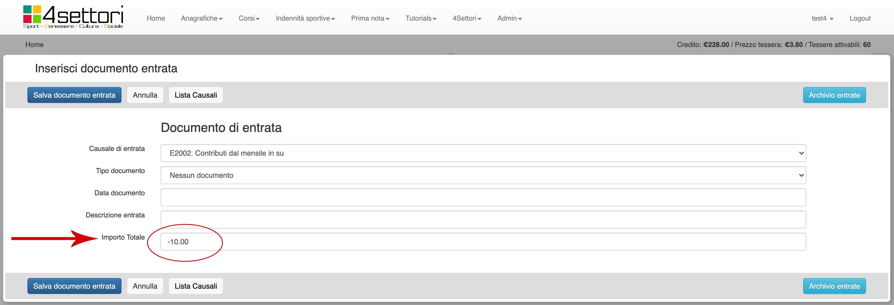 La restituzione di una quota o di un contributo non è propriamente un'uscita, ma è una minor entrata. Per poter registrare la scrittura in maniera corretta bisogna: