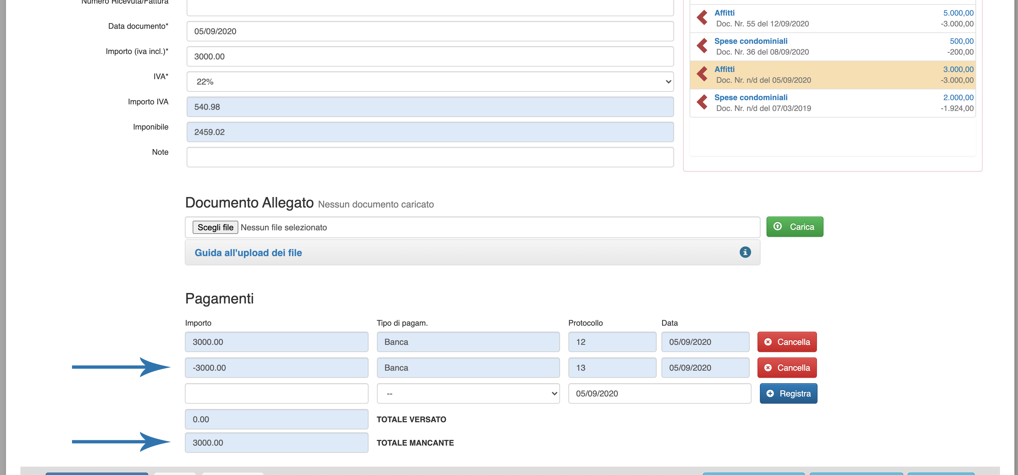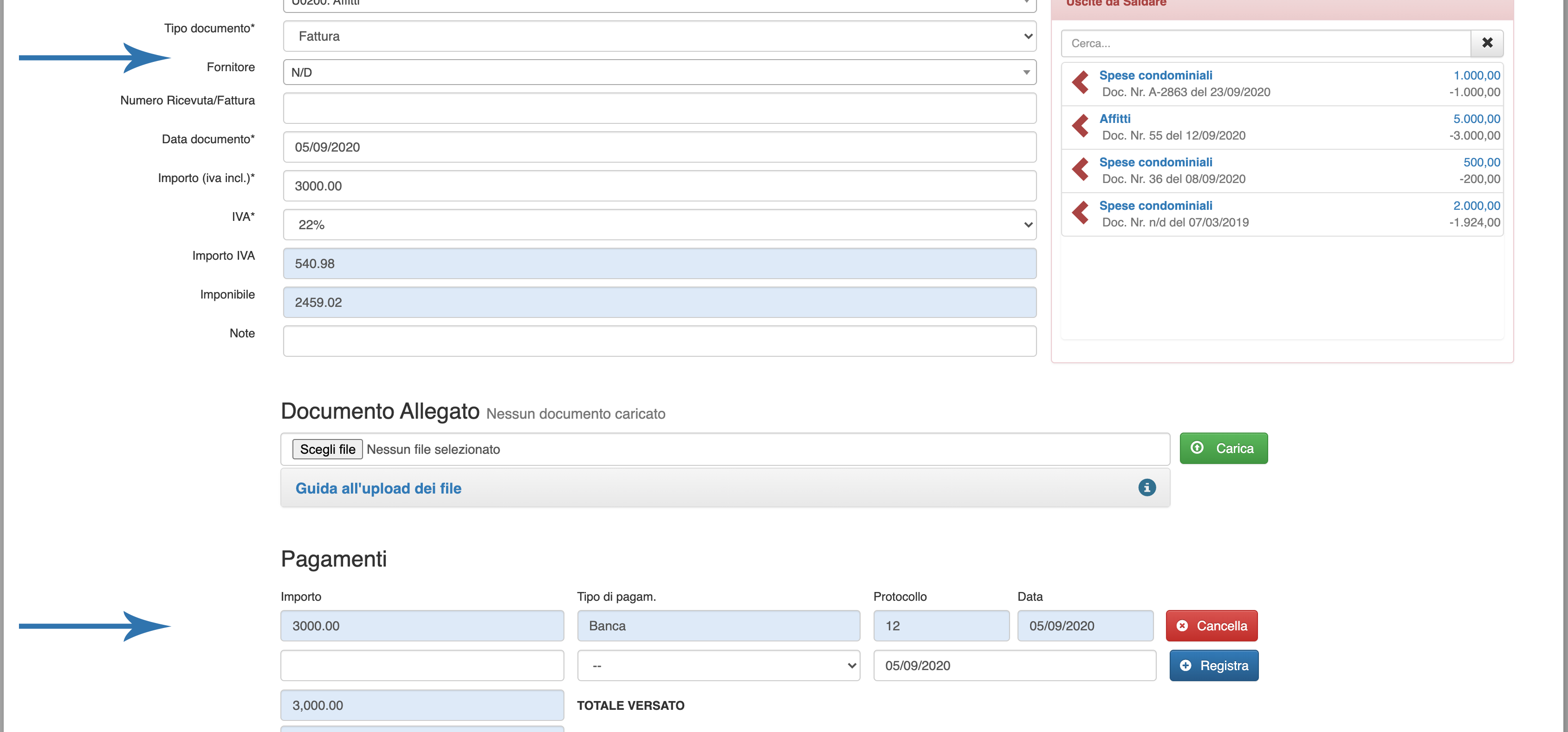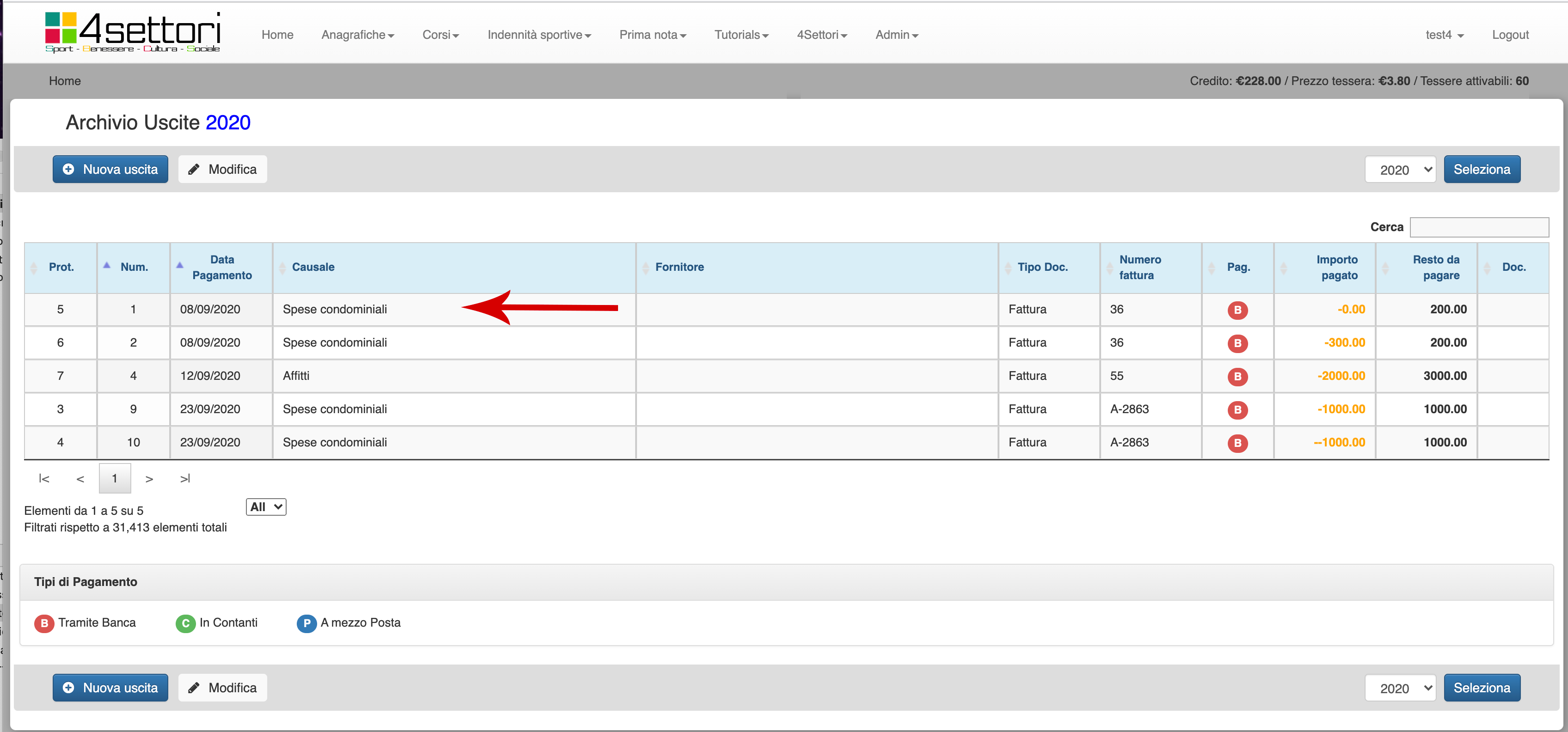 Questa operazione lascerà invariato il debito del sodalizio nei confronti del fornitore (e verrà visionato tra i debiti da pagare in home, e nella schermata di inserimento uscita) importante al fine di una corretta tenuta contabile sopratutto per le SSD.